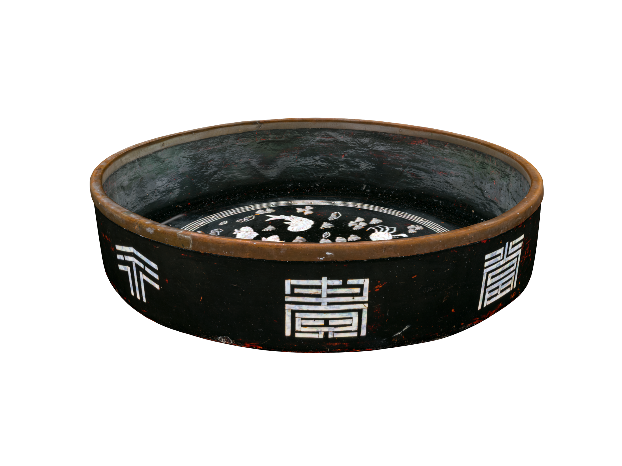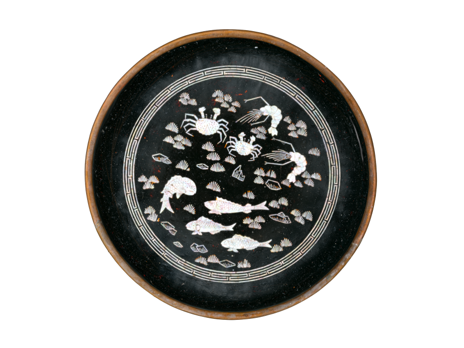 Black-lacquered Sewing Tray Inlaid with a Mother-of-Pearl Design