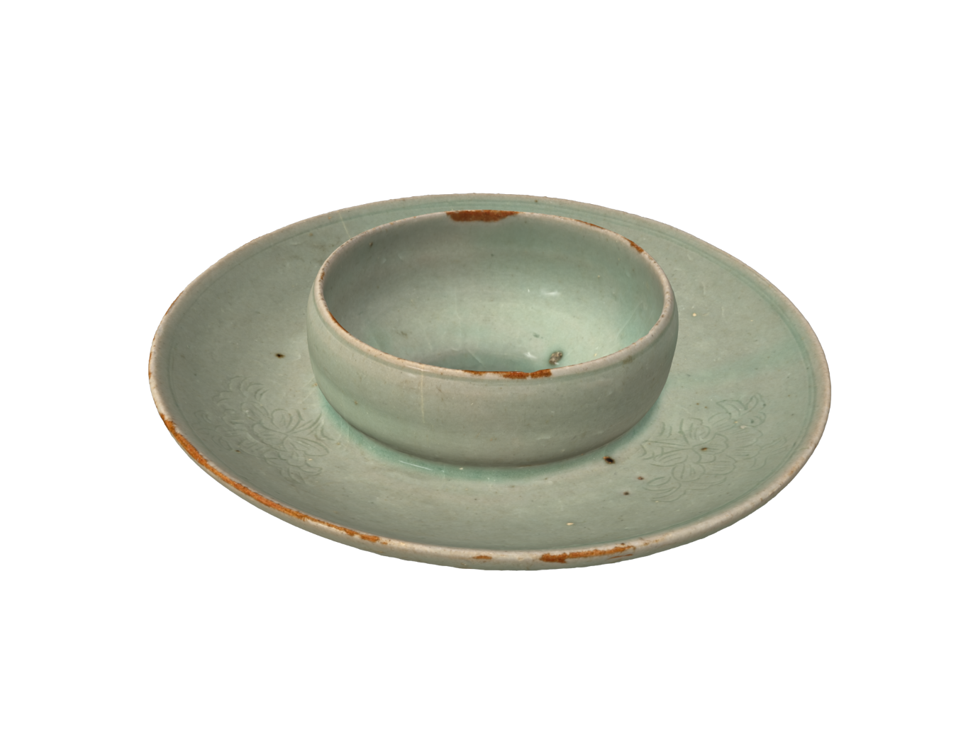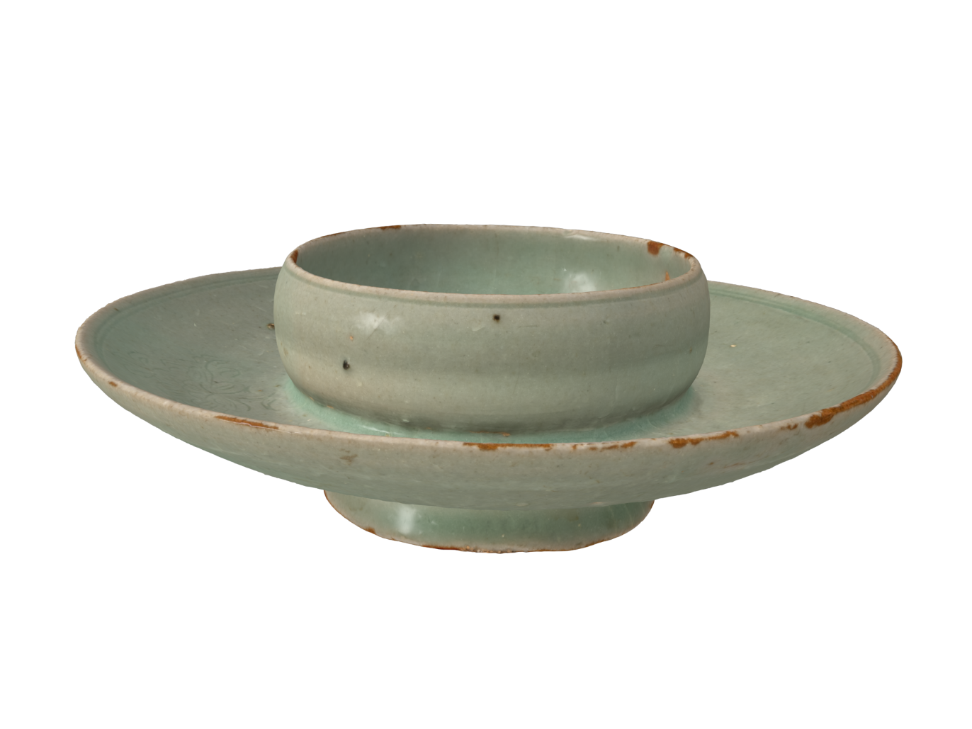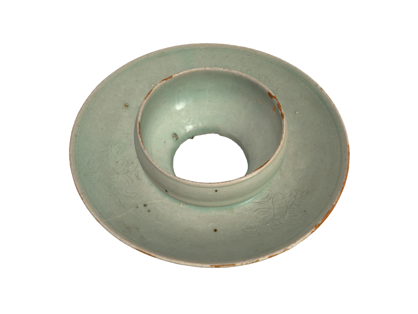 Celadon Cup Stand with Incised Peony Design