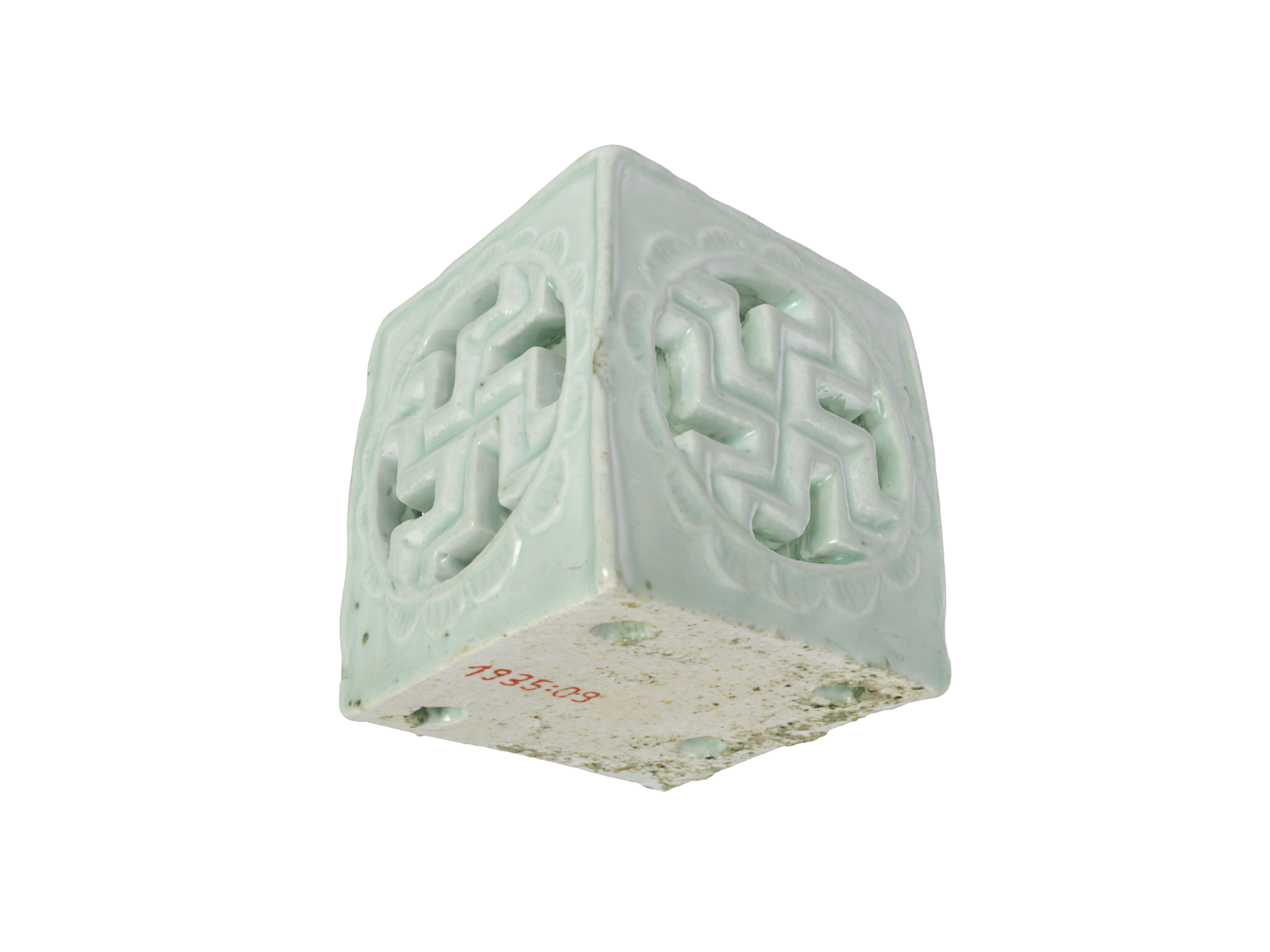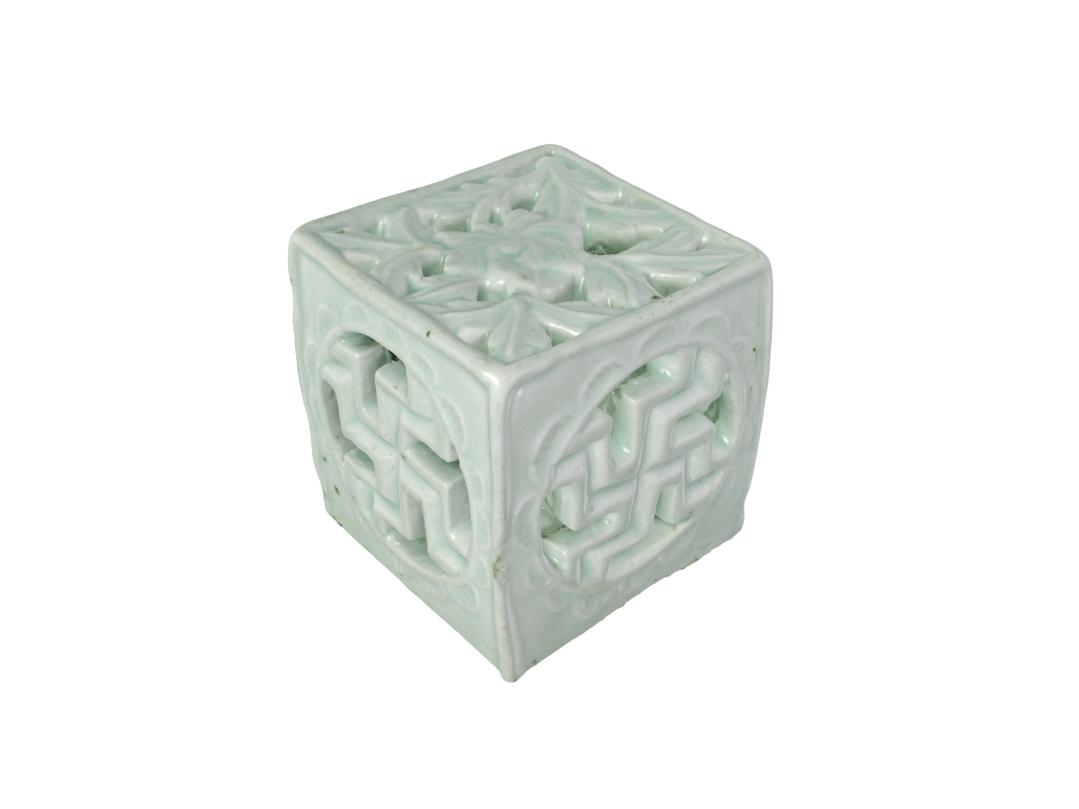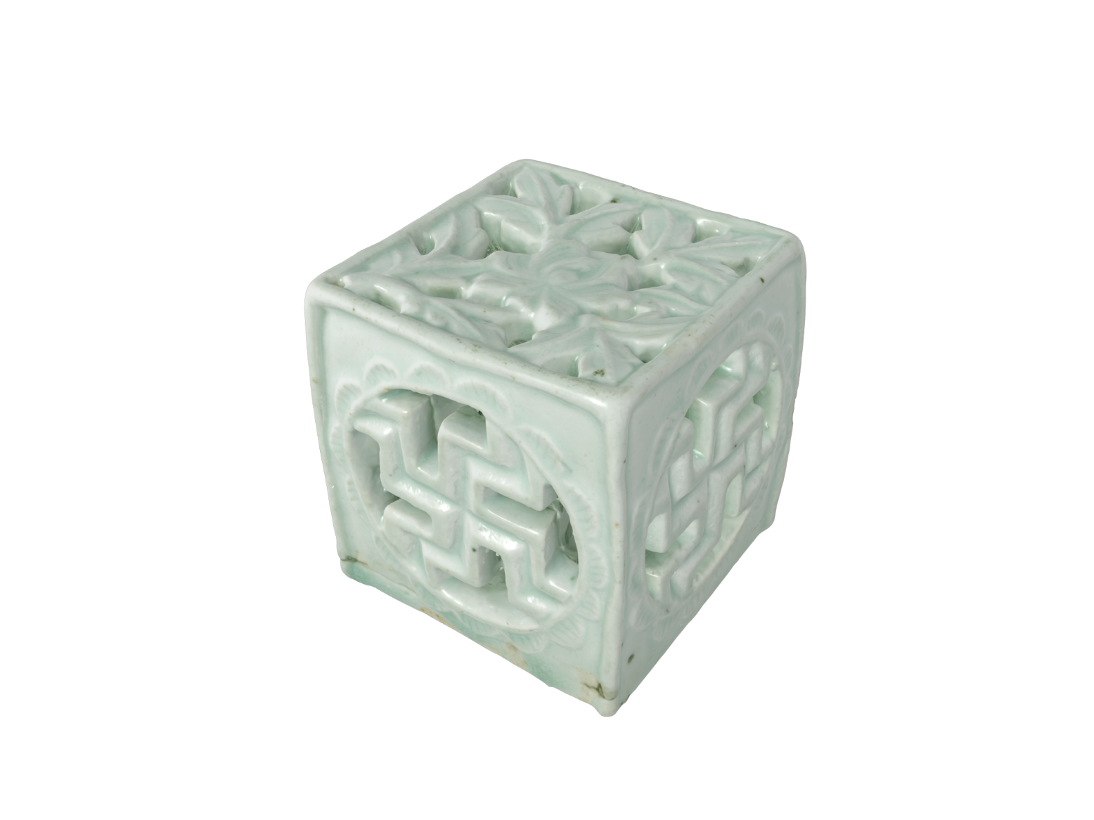 Porcelain Square-shaped Water Dropper with Swastika Openwork Design