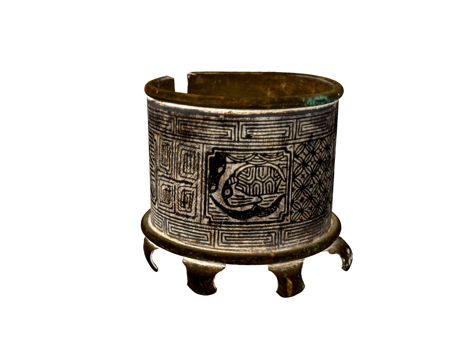 Handwarmer Brazier with Silver-Inlaid Design